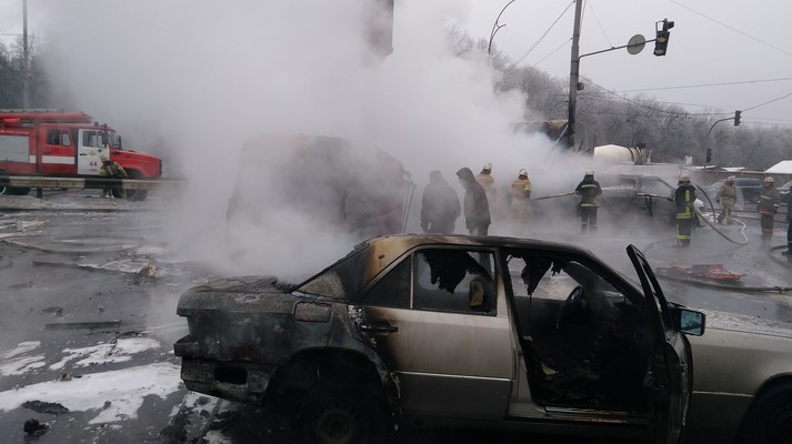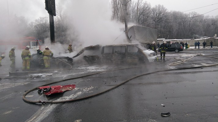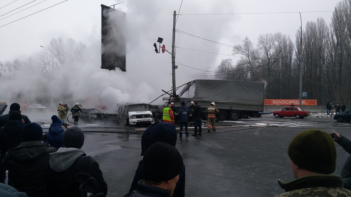 У результаті ДТП розпочалася сильна пожежа. Проїзд на дорозі по Заболотного було перекрито. На місці значні сили рятувальників, п’ять швидких.