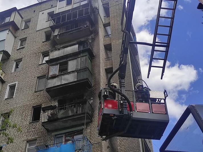На місці рятувальники встановили, що у дев’ятиповерховому житловому будинку горять балкони з п’ятого по дев’ятий поверх з частковим розповсюдженням у квартири.