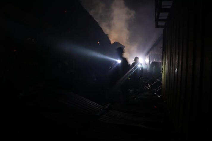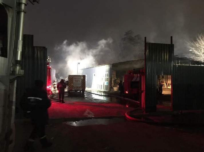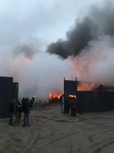 Рятувальники встановили, що пожежа виникла у складському приміщенні розміром 100х30 км. Є загроза розповсюдження вогню на сусідні приміщення.