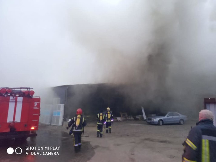 Під час гасіння пожежі сталося обрушення покрівлі площею 300 кв. м. Рятувальниками було винесено 3 кисневих балони.