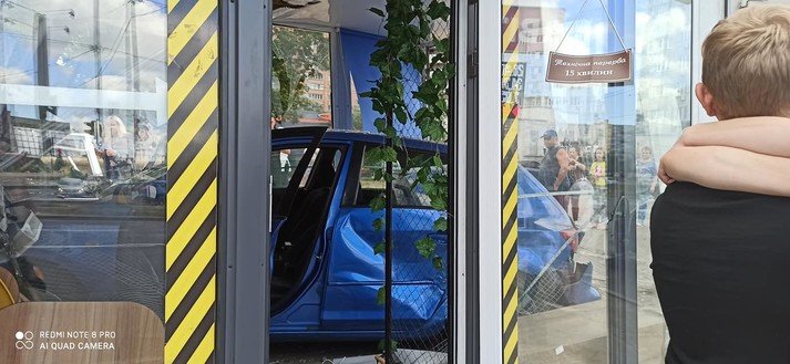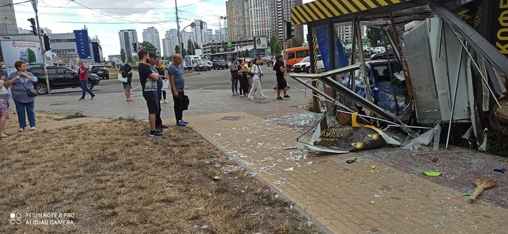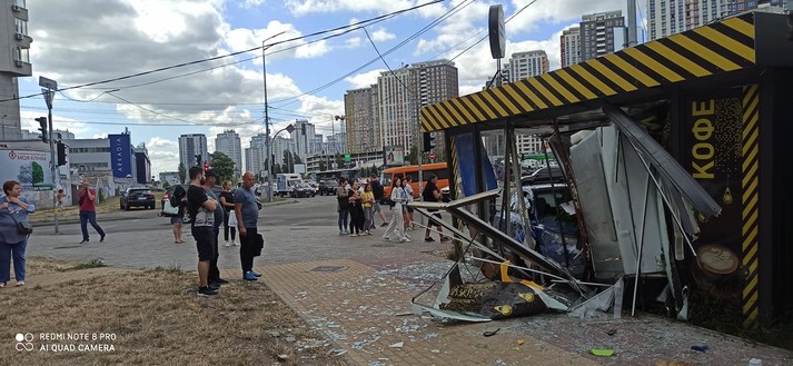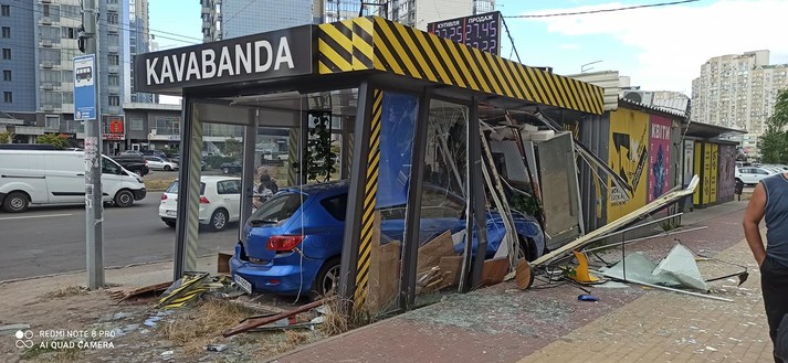 У п'ятницю, 14 серпня, на перетині Дніпровської набережної та Княжого затону у Дарницькому районі Києва легковий автомобіль Mazda в'їхав в кав'ярню на зупинці громадського транспорту.