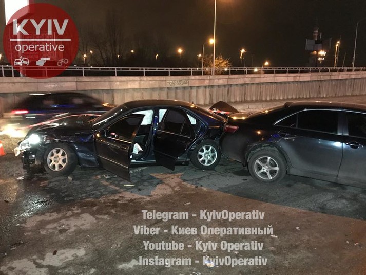 У Києві Mercedes на польських номерах тікаючи під поліції влетів у п'ять автівок