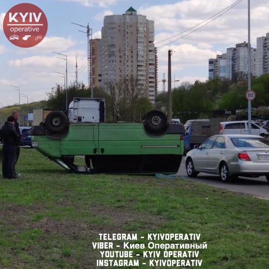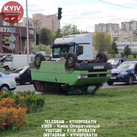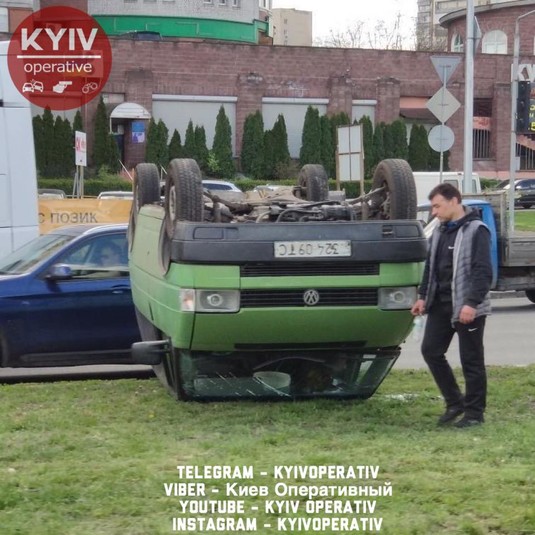 Бус Volkswagen перекинувся на дах, повідомляє «Київ оперативний» у Facebook.