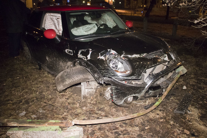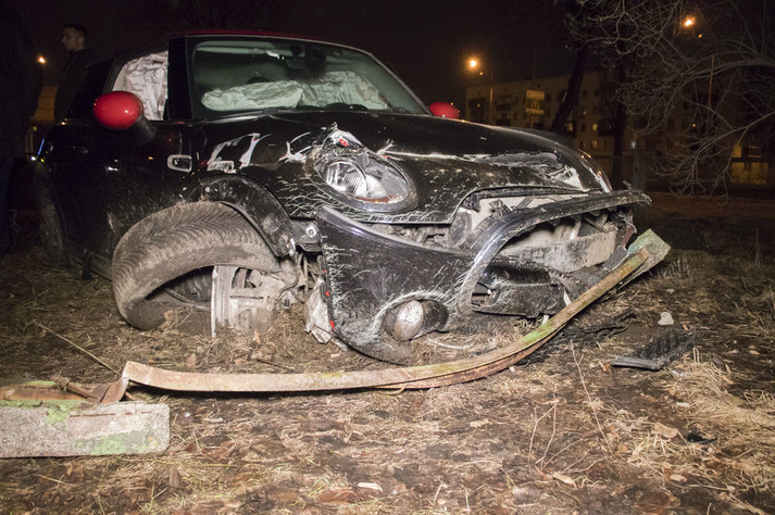 Близько 2:00 автомобіль рухався по бульвару Верховної Ради і на ділянці роздвоєння дороги несподівано вибрав поїхати прямо. За словами водія, Mini Cooper просто відмовився гальмувати. Зупинити його не зміг і паркан навчального закладу, який машина з розбитою підвіскою протягла ще кілька метрів.