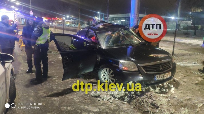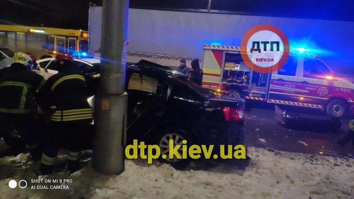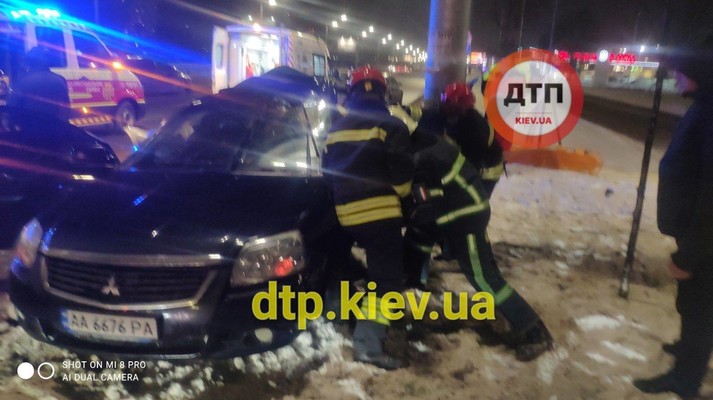 У Києві Mitsubishi врізався у стовп: водія без свідомості забрала «швидка» (фото, відео)