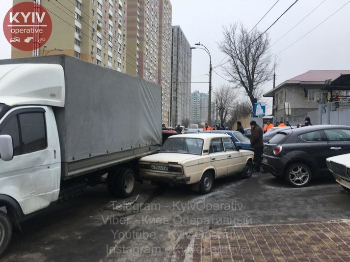 Сьогодні, 20 січня, вранці на проспекті Науки, 53 сталася серйозна ДТП. Автомобіль Mitsubishi врізався у «Газель», після чого автівки відкинуло на ще 5 припаркованих автомобілів.