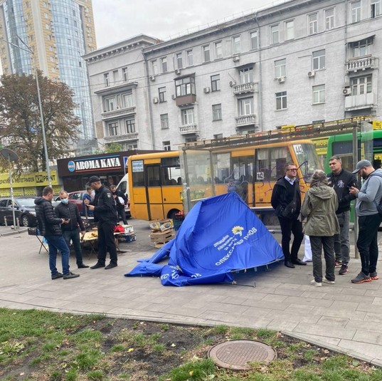 У Солом’янському районі міста Києва невідомі особи здійснили напад на агітаційний намет політичної партії «Опозиційна платформа - За життя». Намет партії розірвали та порізали, а агітаторів «залили» перцевим балончиком.
