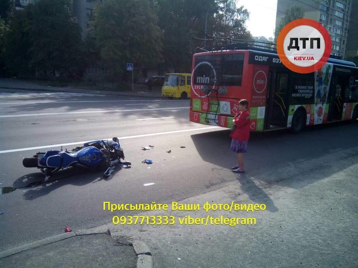 У Києві мотоцикліст на повному ходу врізався у тролейбус