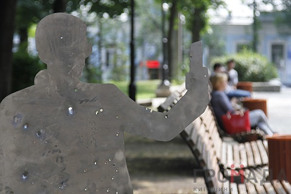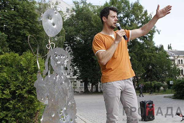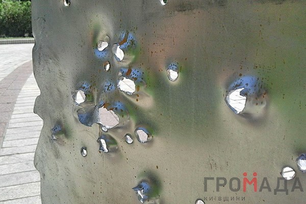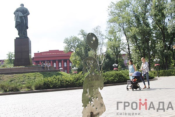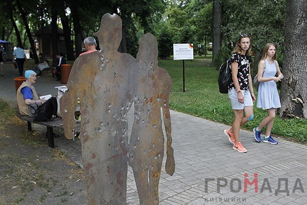 Доброволець і документаліст Олесь Кромпляс вирішив нагадати киянам, що війна зовсім поруч. Створені ним простріляні силуети людей з’явилися на центральних площах та вулицях міста.