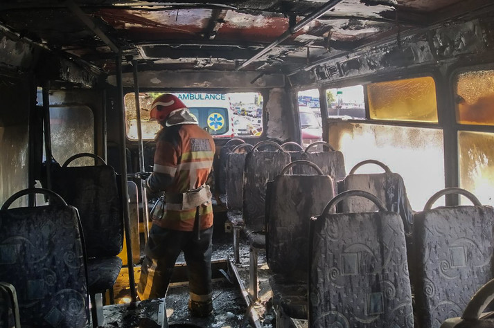 У цей момент водій помітив, що в задній частині автобуса пішов дим. На місце викликали рятувальників, які відразу ж приступили до гасіння загоряння.
