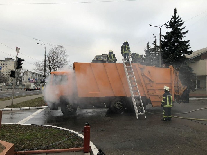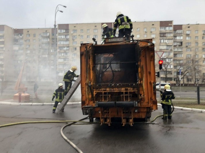 У Києві на ходу загорівся сміттєвоз і сам приїхав до рятувальників (фото)
