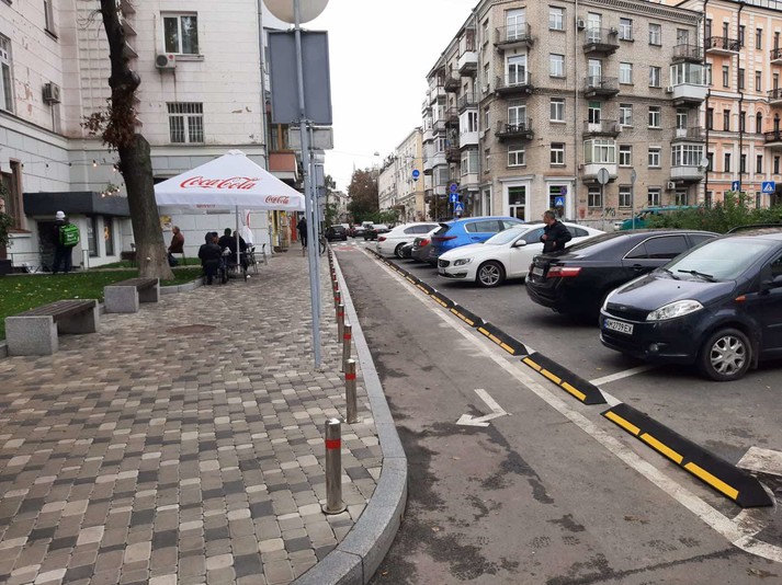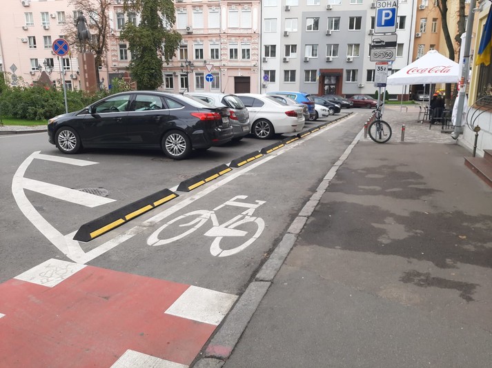 Гумовий борт відокремлює велосипедну смугу від зони паркування автотранспорту