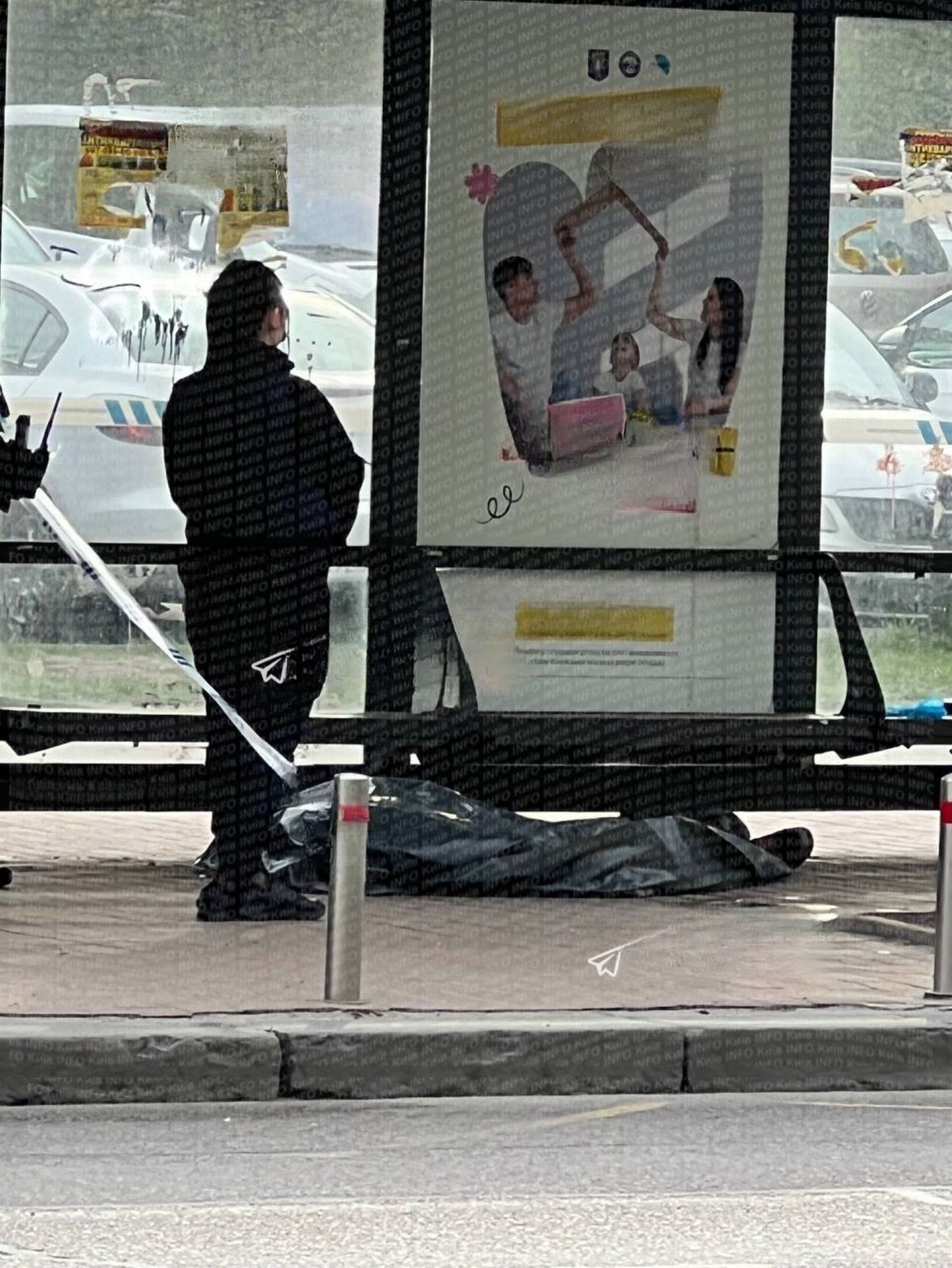 Подія сталася неподалік станції метро «Палац Україна». На оприлюднених у мережі фото видно тіло, загорнуте у чорний пакет, що лежить біля лавки на зупинці.