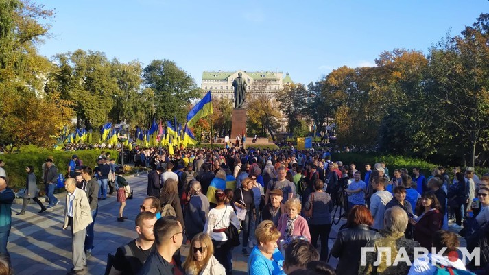 Сьогодні в 77-у річницю створення Української Повстанської Армії та з нагоди Дня захисника України в центрі столиці проходить кілька маршів. Про це передає кореспондент Главкома з місця подій.