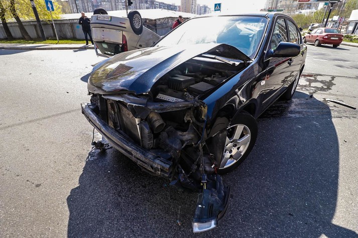 У суботу, 20 квітня, на перетині вулиці Анни Ахматової і проспекту Петра Григоренка в Києві сталася аварія за участю автомобілів Fiat Punto і Kia Magentis. Від зіткнення Fiat перекинувся на дах.