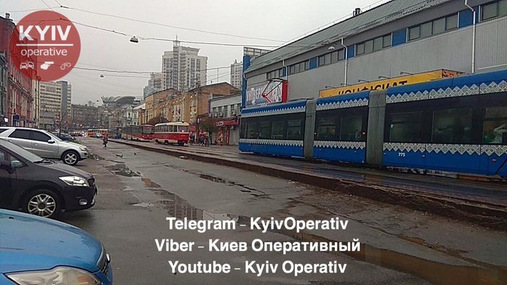 Сьогодні, 16 квітня, на вул. Старовокзальній у Києві сталася ДТП між двома трамваями.