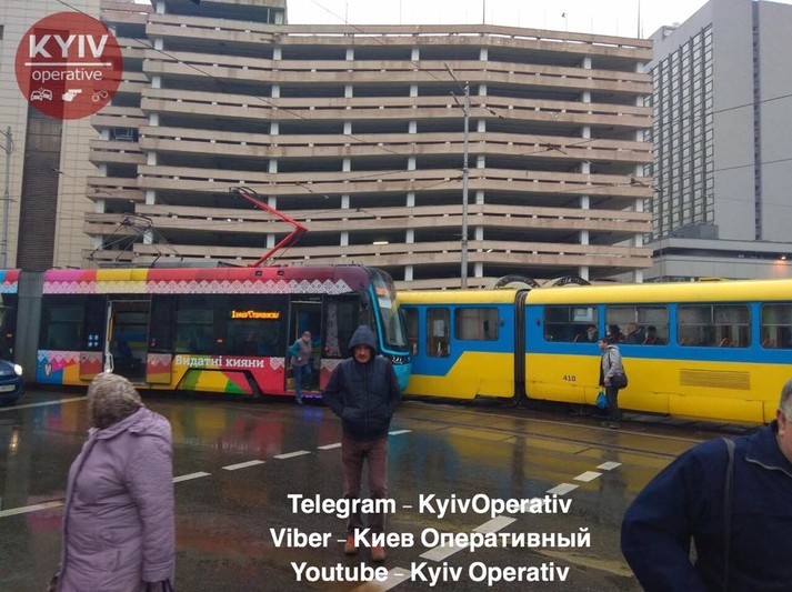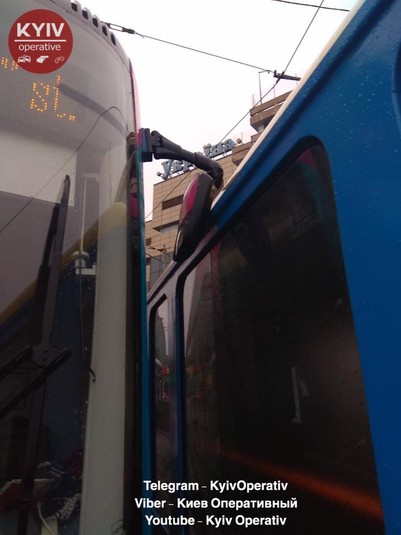 У Києві не розминулися два трамваї (фото)