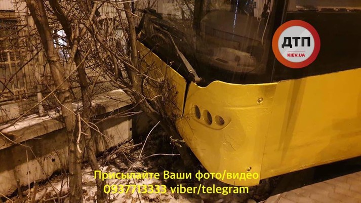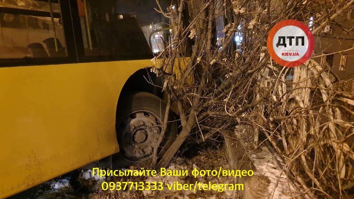 У Києві некерований тролейбус вилетів на тротуар і врізався у дерево
