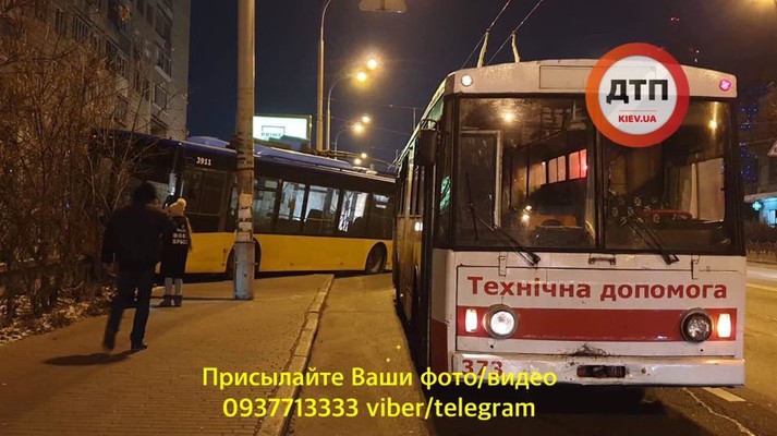 У четвер, 22 листопада, ввечері на вул. Чорновола у Києві сталася ДТП за участю громадського транспорту.