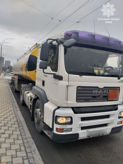 Днями на вулиці Заболотного інспектори відділу безпеки дорожнього руху зупинили бензовоз MAN, водій якого порушував правила дорожнього руху. Про це повідомляє Патрульна поліція Києва.