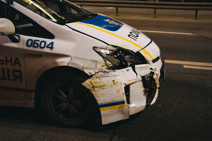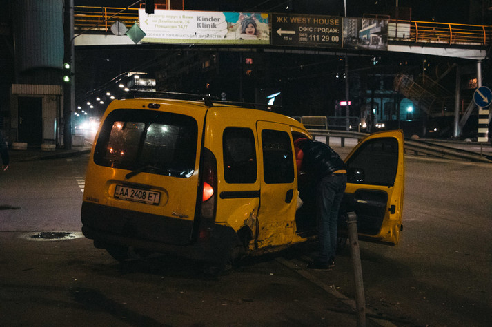 Як розповіли патрульні, вони їхали по проспекту Лобановського в сторону Деміївської площі. У протилежному напрямку їхав Renault. На перехресті Kangoo почав повертати ліворуч, на вулицю Деміївську. У цей момент і сталося зіткнення.
