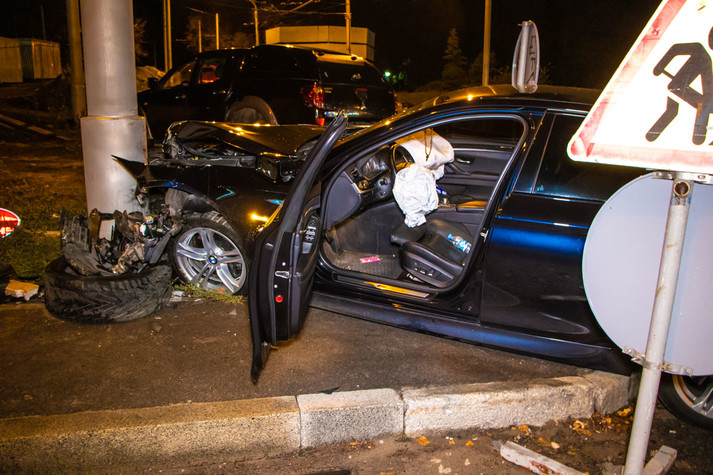 За попередньою інформацією, легковик рухався проспектом Перемоги в бік станції метро «Берестейська». На місці тимчасового світлофору біля Шулявського мосту перед ними почав розвертатися інший автомобіль. Аби уникнути зіткнення, BMW різко почав розвертатися вправо, злетів із проїжджої частини і врізався у стовп.
