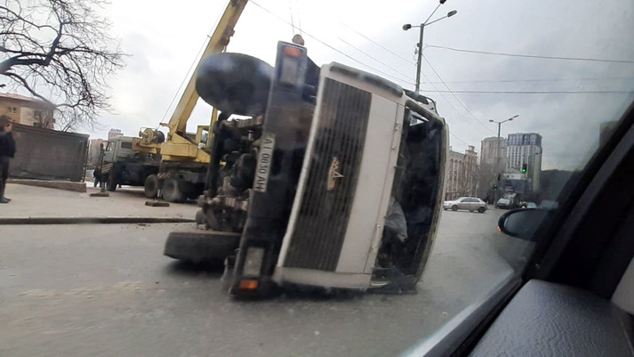 Зазначається, що близько 14:45 вантажівка МАЗ виїжджала з території будівництва і, повертаючи, перекинулася на проїжджу частину. «Габаритний металевий вантаж випав із кузова, перекривши проїзд по вулиці», – йдеться у повідомленні.