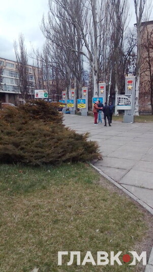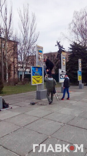 Порожні місця наразі затягують банерами. На них − назви українських міст-героїв які здобули це звання в російсько-українській війні.