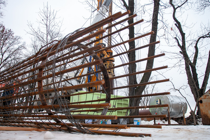 «Розпочали будівельні роботи зі зведення пішохідно-велосипедного мосту, який з’єднає парк «Хрещатий» та Володимирську гірку. Сьогодні на об’єкті працює бурова установка і розпочинається влаштування першої палі», – розповів заступник голови КМДА.
