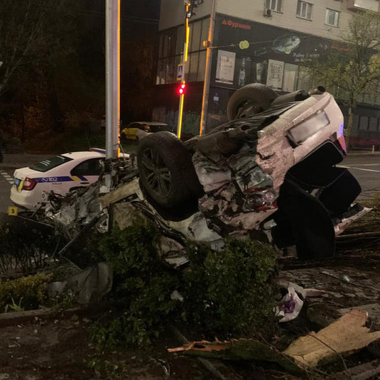 Водій, не впоравшись з керуванням, виїхав за межі проїзної частини, що спровокувало перекидання автомобіля на дах, з наїздом на дерево та опору світлофора.