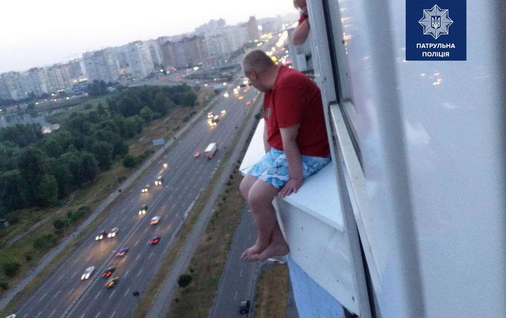 На проспекті Миколи Бажана у Києві мешканець однієї з квартир на 17-му поверсі виліз у вікно і приготувався стрибати донизу. На заваді стала дружина, яка негайно зателефонувала на «102».