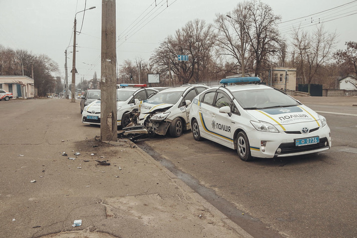 За попередніми даними, поліцейський автомобіль Toyota Prius рухався по вулиці Юрія Іллєнка в сторону вулиці Січових Стрільців. Водій патрульної машини заснув за кермом, від чого машину занесло і вона врізалася в електроопору.