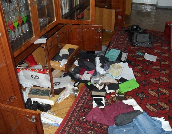 Попередньо встановлено, що зловмисники проникли до квартири, пошкодивши замок вхідних дверей.