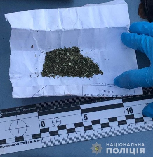 На місце одразу викликали екіпаж патрульної поліції та слідчо-оперативну групу Голосіївського управління поліції, яка задокументувала подію. У водія вилучили паперовий згорток із подрібненою рослинною речовиною, схожою на марихуану.