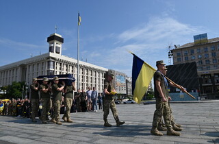 Сьогодні в Києві біля стели на Майдані Незалежності в останню путь провели захисника та майданівця Павла Каленіченка, який загинув у боях за Україну. Про це повідомляє «Цензор.НЕТ».