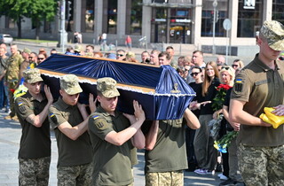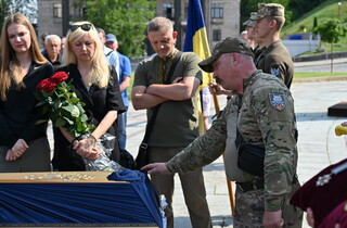 Також у Черкасах попрощалися з офіцером Збройних сил України та журналістом Володимиром Муканом. Захисник країни загинув 28 квітня під Бахмутом під час боїв проти російських окупаційних військ.