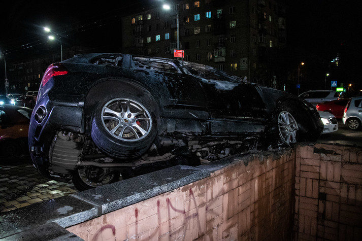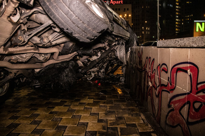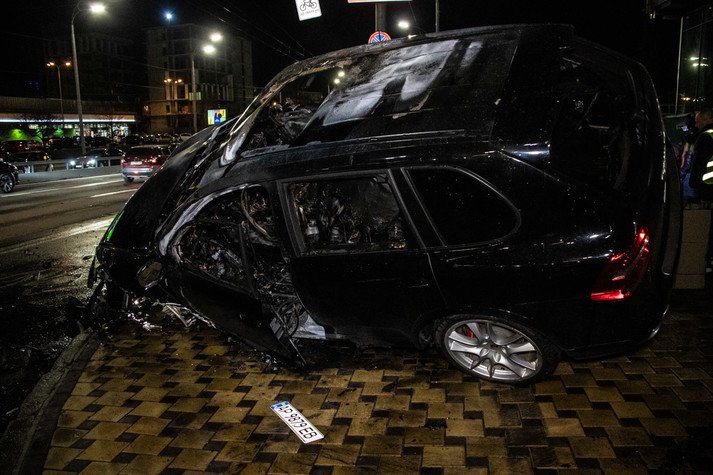 У Києві Porsche протаранив Chevrolet і загорівся над підземним переходом