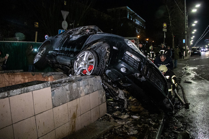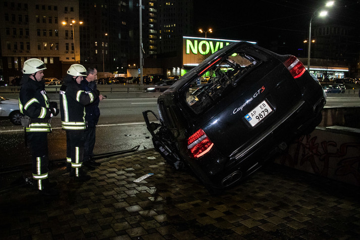 За словами водія Chevrolet, він повертав з бульвару на вулицю Чеську з правого ряду. Несподівано позаду нього Porsche перебудувався з крайнього лівого ряду на смугу громадського транспорту, де і сталося зіткнення. Від удару позашляховик перекинувся, залетів на огорожу підземного переходу та загорівся.