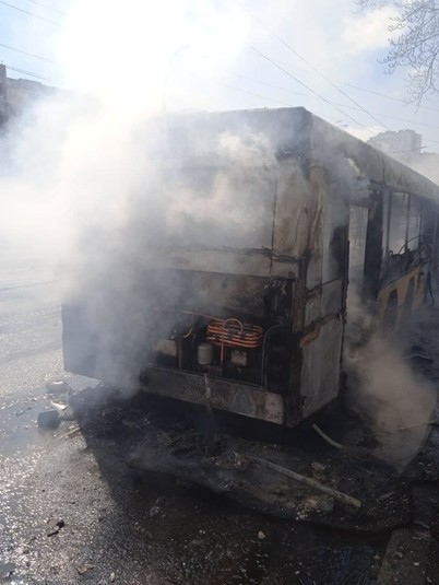 У Києві посеред дороги вщент згорів пасажирський автобус (фото)