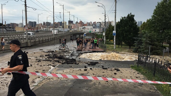 8 липня поблизу станції метро «Деміївська» та Національної бібліотеки України імені Вернадського у Голосіївському районі Києва прорвало трубу гарячого водогону. Фото та відео наслідків прориву оприлюднив користувач Max Yuriev у Facebook.