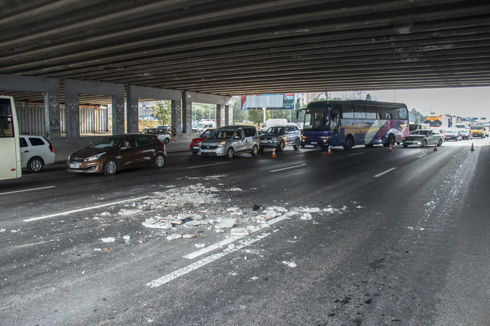 Шматки бетону впали на автомобілі під шляхопроводом