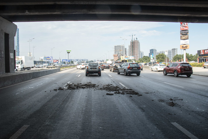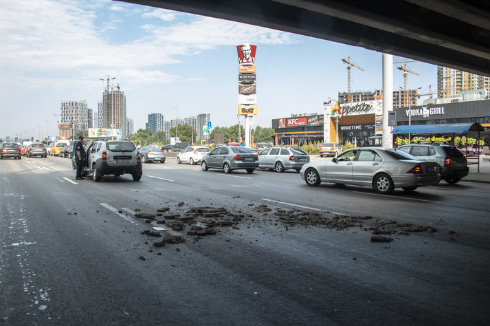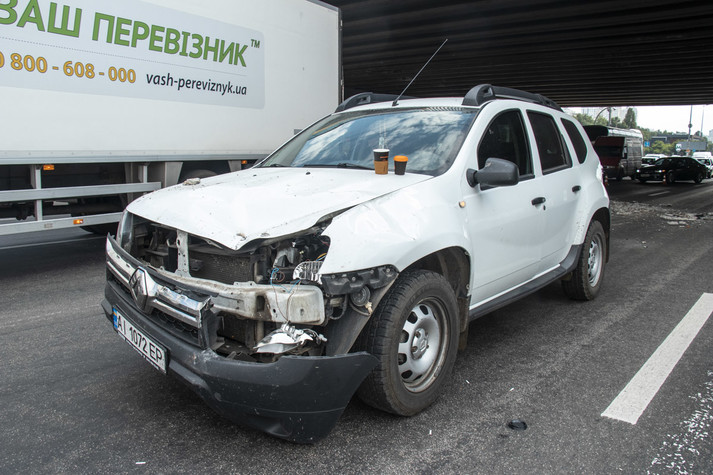 У понеділок, 24 червня, вранці в Києві біля станції метро «Осокорки» посипався шляхопровід: автомобіль Renault Duster постраждав від шматків бетону моста.