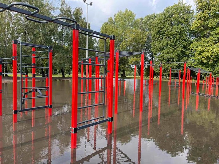 У Києві через рясні дощі затопило новий спорткомплекс на ВДНГ, який відкрили лише минулого тижня. Відповідне фото опублікувала Любов Фоміна в співтоваристві «Сусіди. Голосіїв» в Facebook.