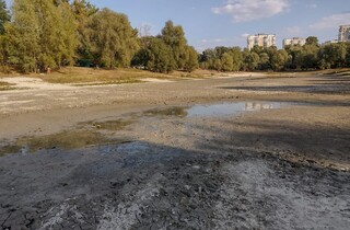 У Подільському районі Києва, на Виноградарі, повністю висохло озеро Синє. Від нього лишилося кілька невеликих калюж та вологий ґрунт. Про це на своїй сторінці у Facebook розповів київський активіст Михайло Сторожук.