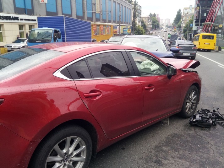 Як розповів водій «Мазди», він рухався у крайній лівій смузі у тянучці і швидкість була невеликою.