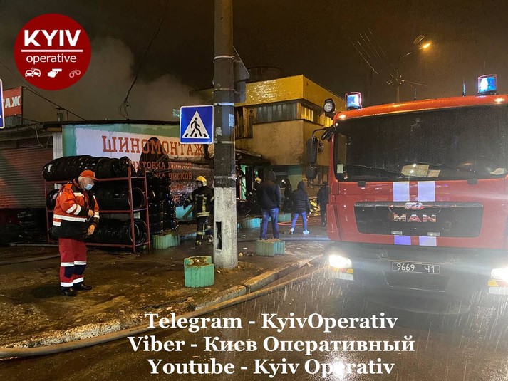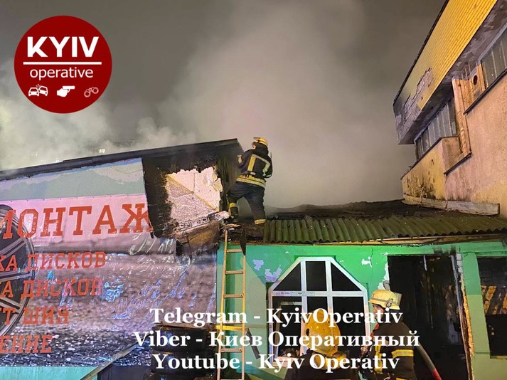 У Києві пожежа знищила шиномонтаж і пошкодила кафе (фото)