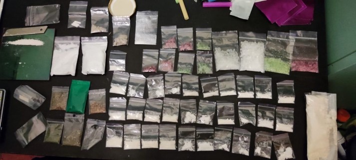 У ході проведення обшуку в автомобілі затриманого виявлено та вилучено близько 300 г амфетаміну, шість марок ЛСД, канабіс, вісім пігулок МДМА, метамфетамін, подрібнений ЛСД, а також грошові кошти.