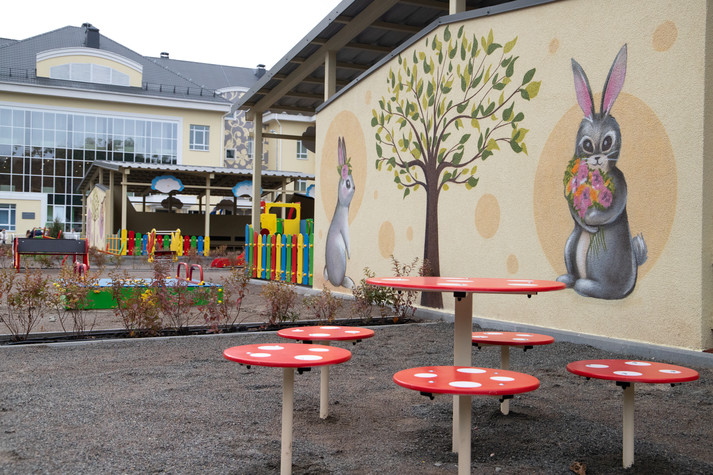 Дошкільний заклад має велику територію з ігровими майданчиками на свіжому повітрі, тіньовими навісами.