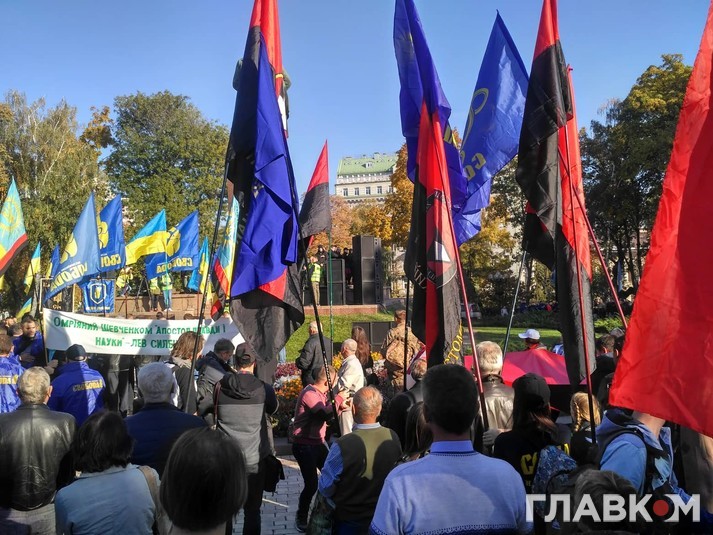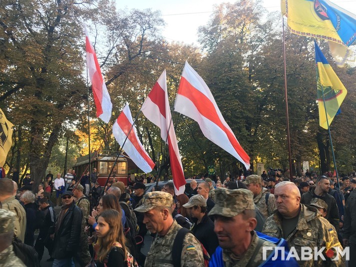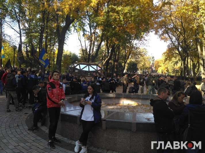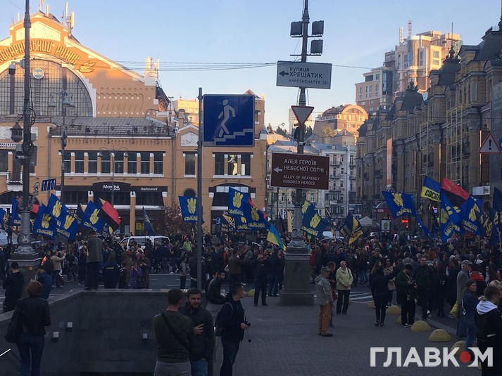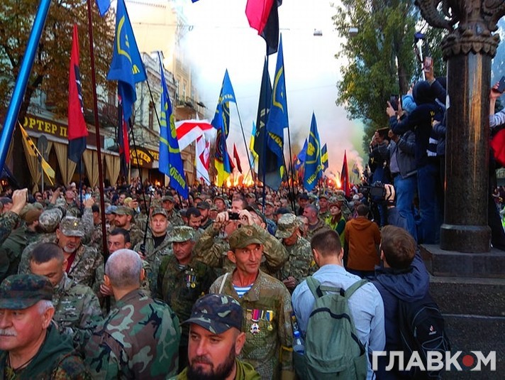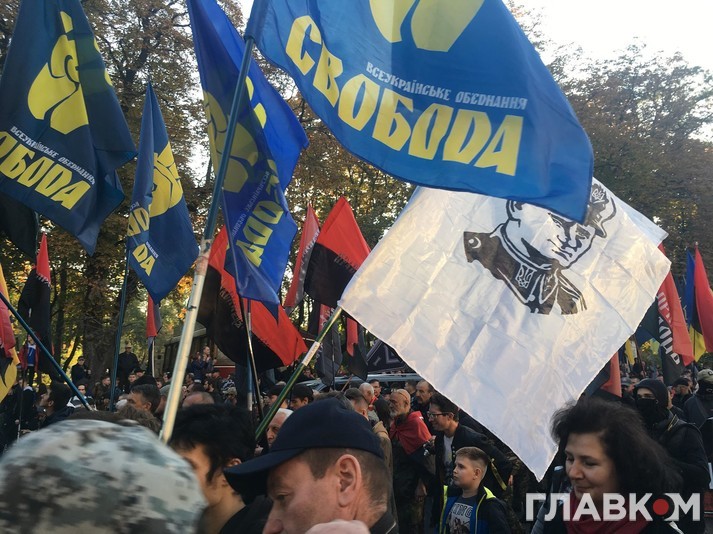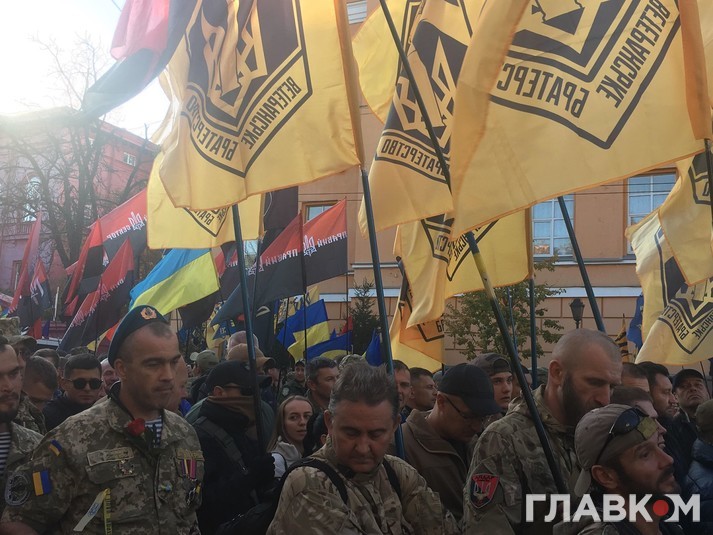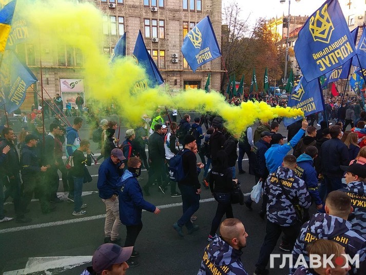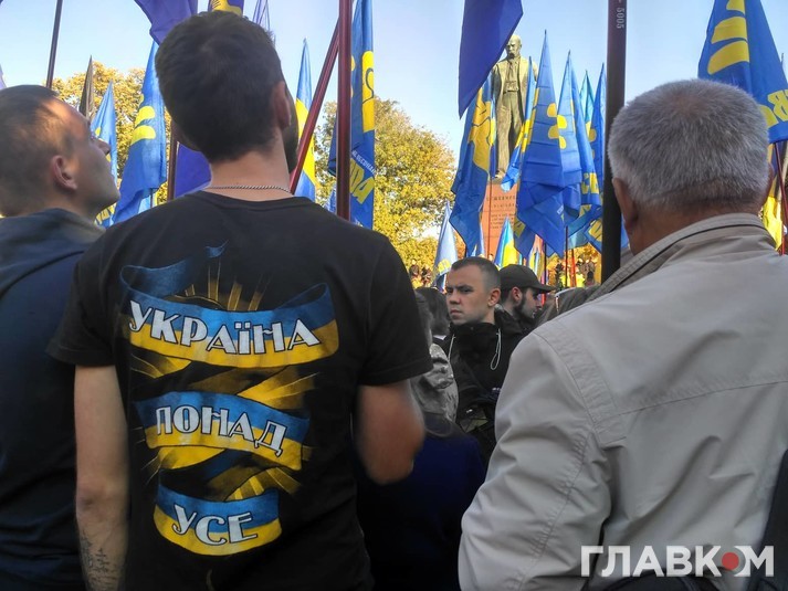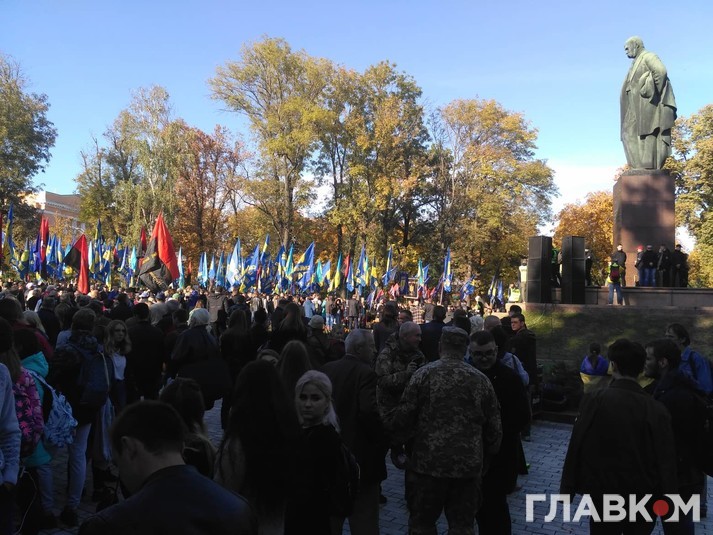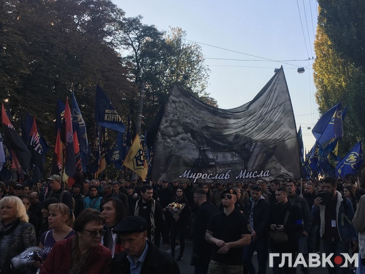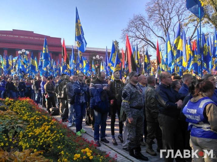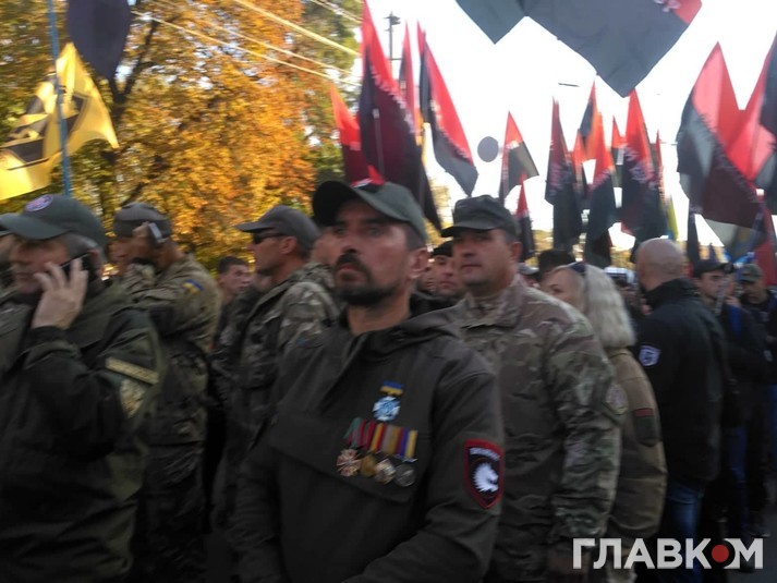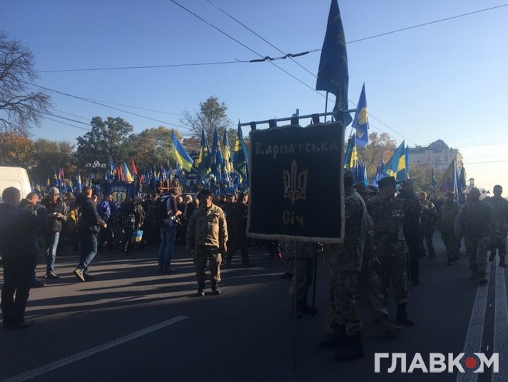 Відзначити 76-річчя створення Української повстанської армії в столиці зібралися представники партії «Національний Корпус», Національних дружин, ВО «Свобода», Правого сектору, Конгресу українських націоналістів, Організації українських націоналістів, C14, ВО «Тризуб» імені Степана Бандери та інших націоналістичних організацій.