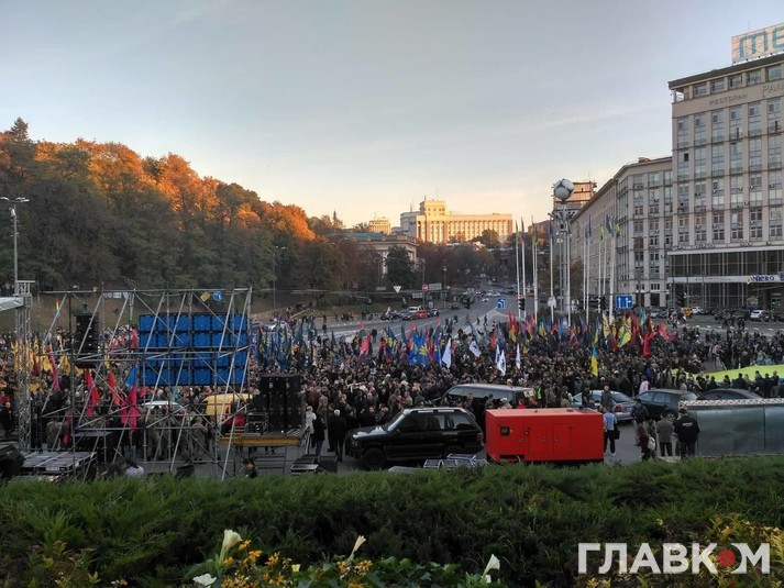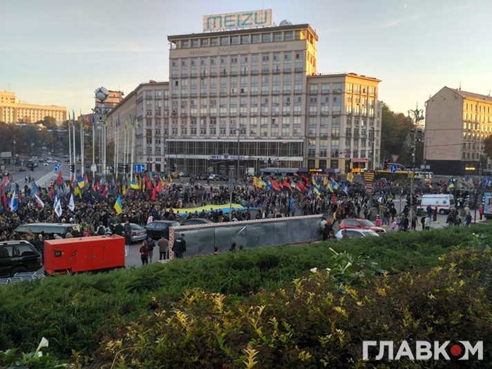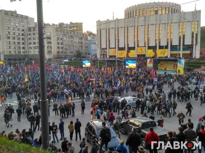 Близько 17.40 учасники маршу дійшли до Європейської площі, де відбудеться урочистий мітинг та святковий концерт гурту «Кому вниз».